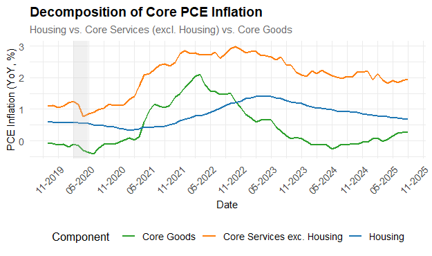 Core PCE inflation into its three main components, displayed in Figure 3.